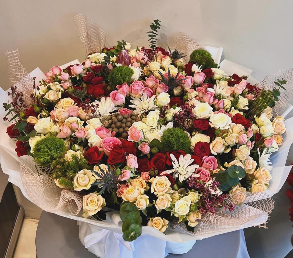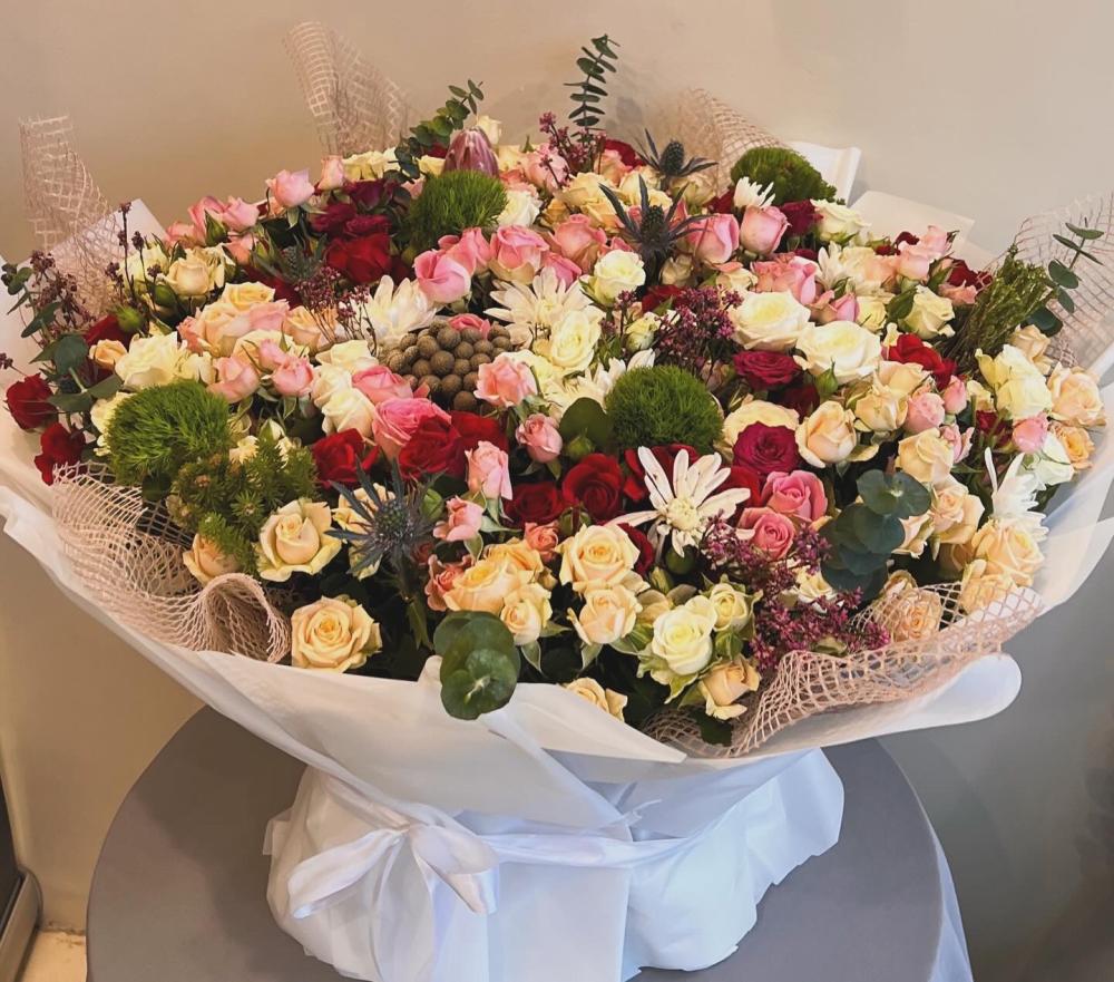 أضف السعادة والجمال إلى مناسباتك مع باقة البيبي جوري العملاقة، المصممة بعناية لتكون رمزًا للرقي والجاذبية. تتميز هذه الباقة بتنسيق فاخر من زهور البيبي جوري المتنوعة والكثيفة، بألوانها الزاهية والمبهجة التي تنشر السعادة وتعيد البهجة من جديد.