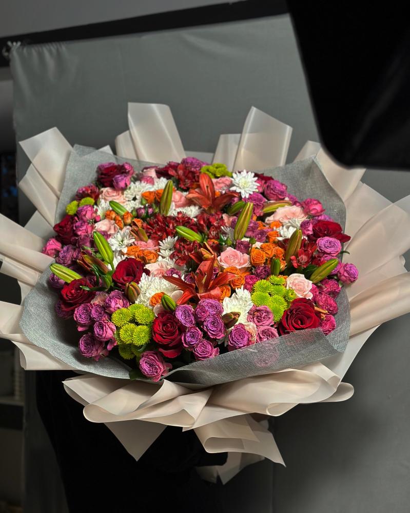 هذه الباقة لا تعبّر فقط عن الذوق الرفيع، بل تمنح لحظاتك لمسة ساحرة وتعبّر عن أسمى مشاعرك بكلمات صامتة من الزهور.