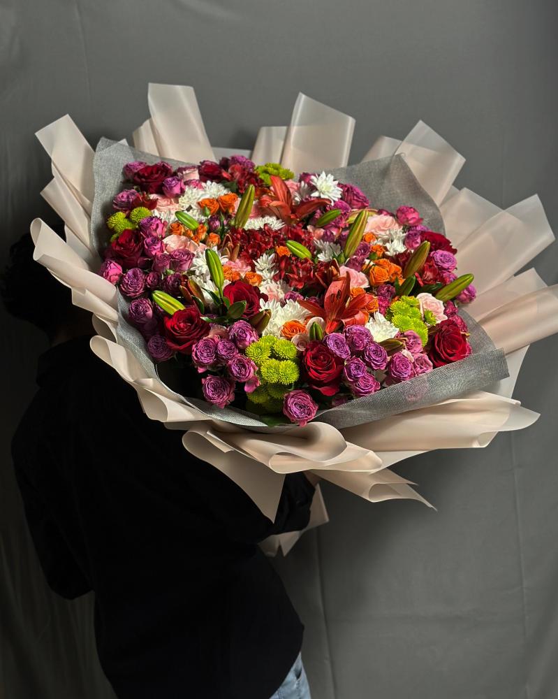 قدّم هدية تبقى في الذاكرة مع باقة الورد العملاقة من "روز فالي"، بتنسيق فاخر يضم أجمل أنواع الزهور الطبيعية مثل: الورد الجوري، البيبي روز، الليليوم، القرنفل، وزهور خضراء نابضة بالحياة.