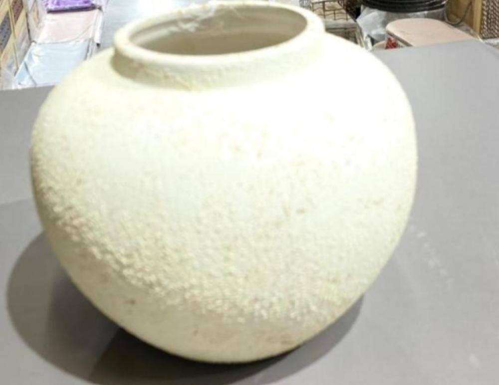 أضف لمسة من البساطة الراقية إلى مساحتك مع هذه الفازة المصنوعة من السيراميك الأبيض بتصميم كروي كلاسيكي وملمس ناعم يشبه الرمل. تناسب مختلف أنواع تنسيقات الزهور وتُضفي جمالاً مميزًا على الطاولات والرفوف.