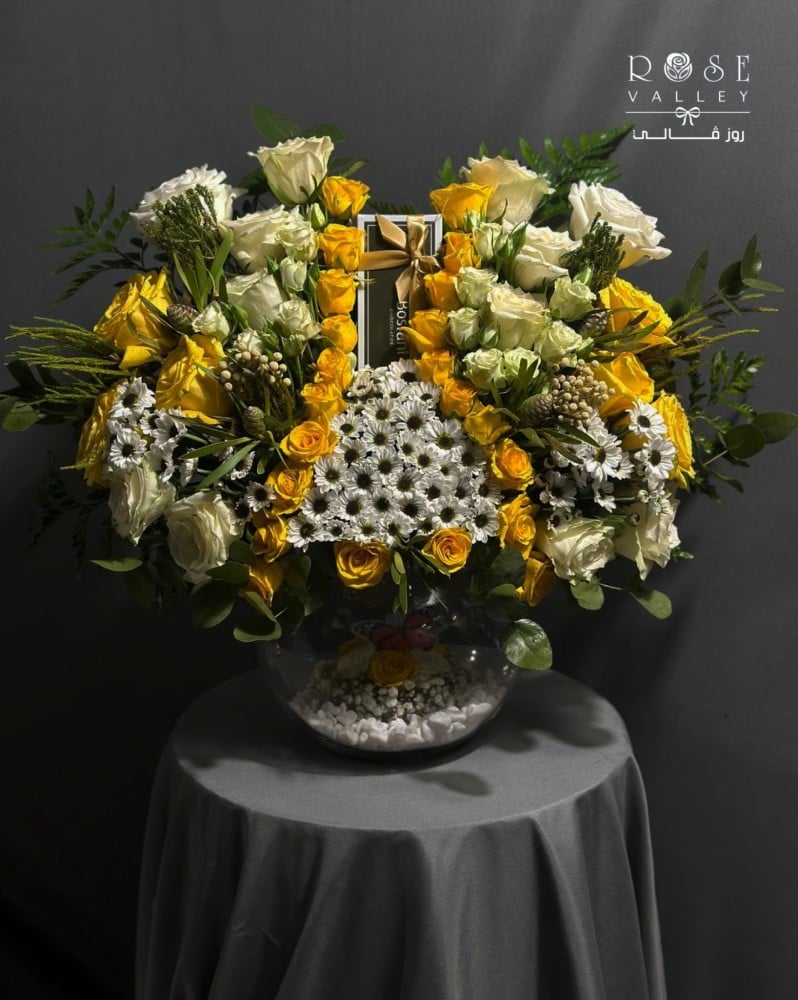 فازة متوسطة تزيين ورود منوعه &250غ بستاني